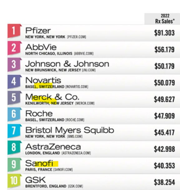 2022년 매출 기준. 하지만 현재는 화이자가 1위를 뺏김