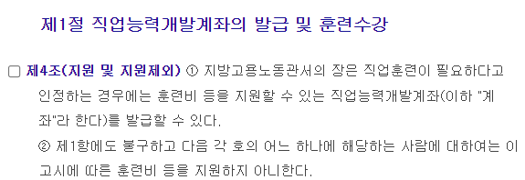 국민내일배움카드 운영 규정 4조 5항 규정입니다.