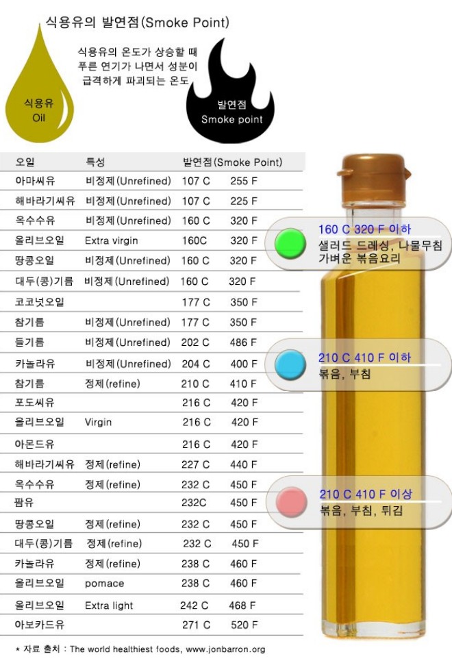이런 이유들로 인해 발연점과 산화안정성을 함께 고려해서 결정해야 합니다.