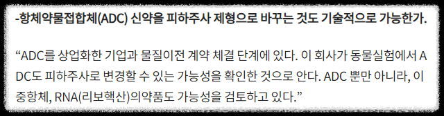 ADC 정맥주사의 부작용을 피하주사 제형이 해결해 줄 수 있음. 현재 알테오젠만 할 수 있음(엔허투 2029년 예상 매출이 13조 정도 된다고 함. 다시 5% 하면...?).