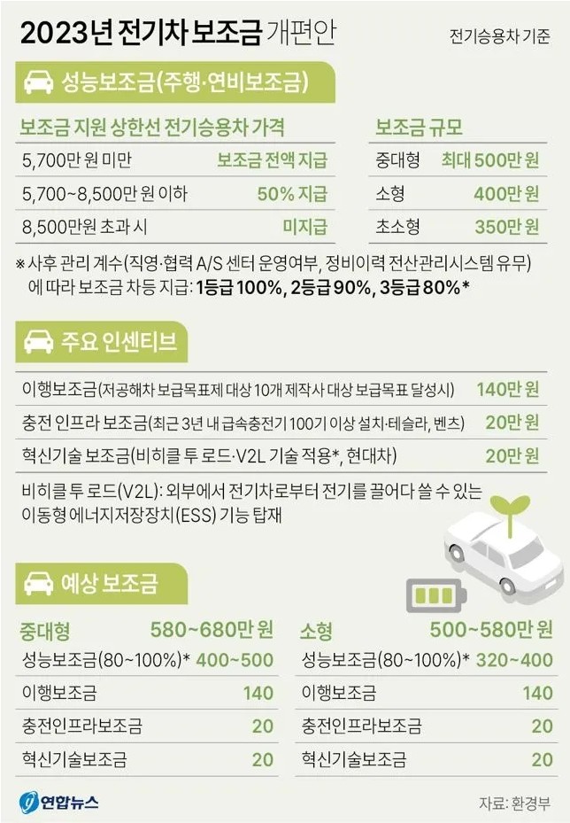 2023년도 전기차 구매보조금 개편방안이 나왔습니다.