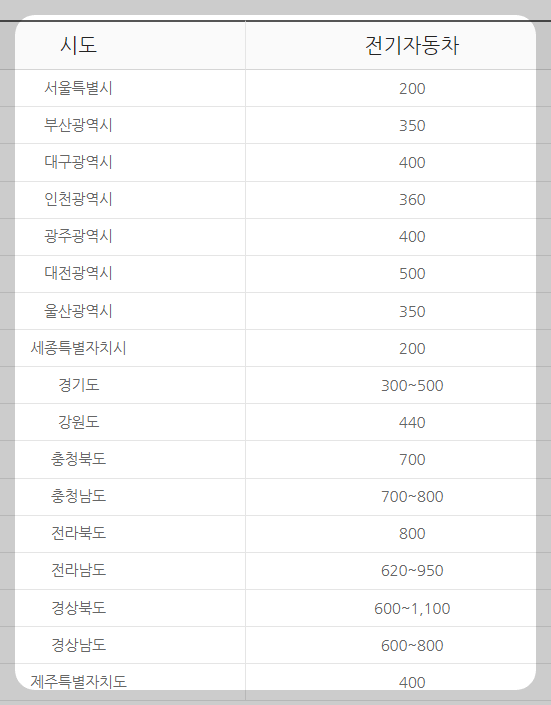 - 앞의 보조금은 중앙정부 차원이고, 각 지자체별로 전기차 보조금 추가 지원합니다.