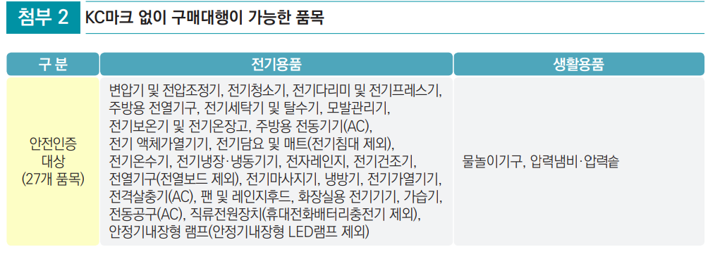 보다 자세한 사항은 산업통상자원부 국가기술표준원에서 발행한 아래 <전기용품 및 생활용품 안전관리법 가이드북>을 다운로드 받으시면 됩니다.