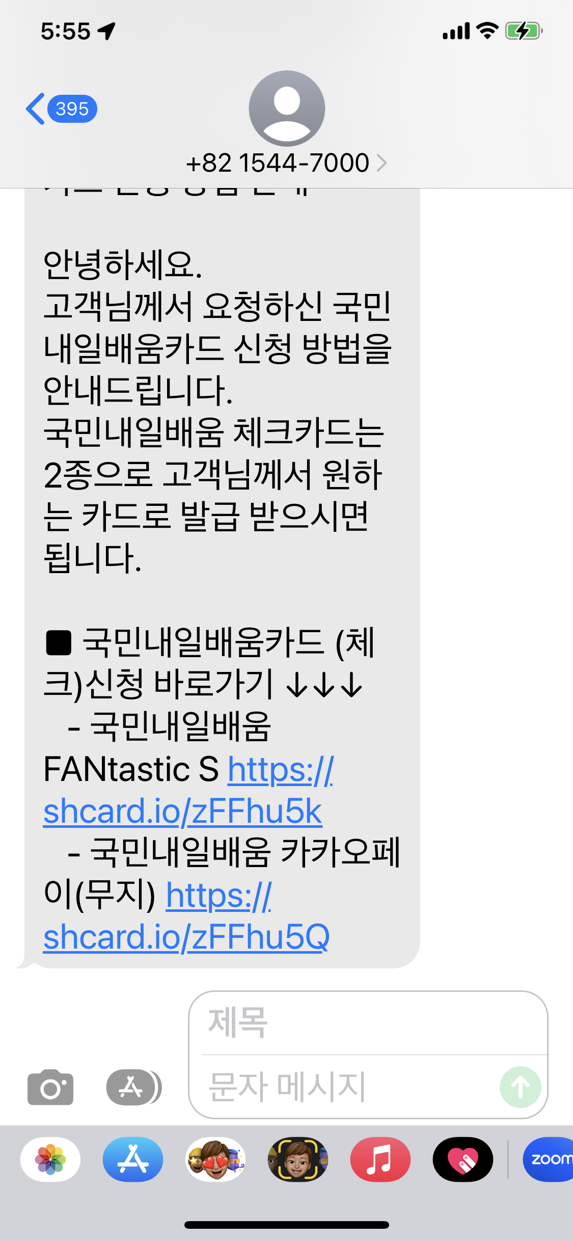 하루 정도 이따가 어떤 카드로 선택할 지 문자가 옵니다. 원하는 카드를 선택하고 기다리면 됩니다.