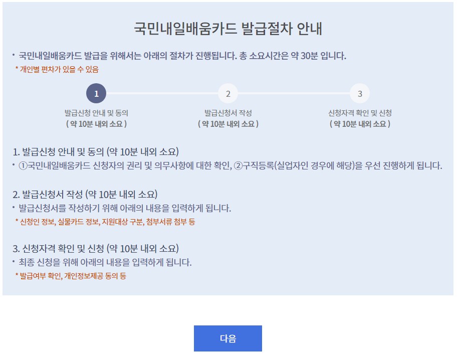4) 발급 절차 안내( 30분 정도 소요 예정) 확인 후 [다음] - 그런데 10분 정도면 끝나요!
