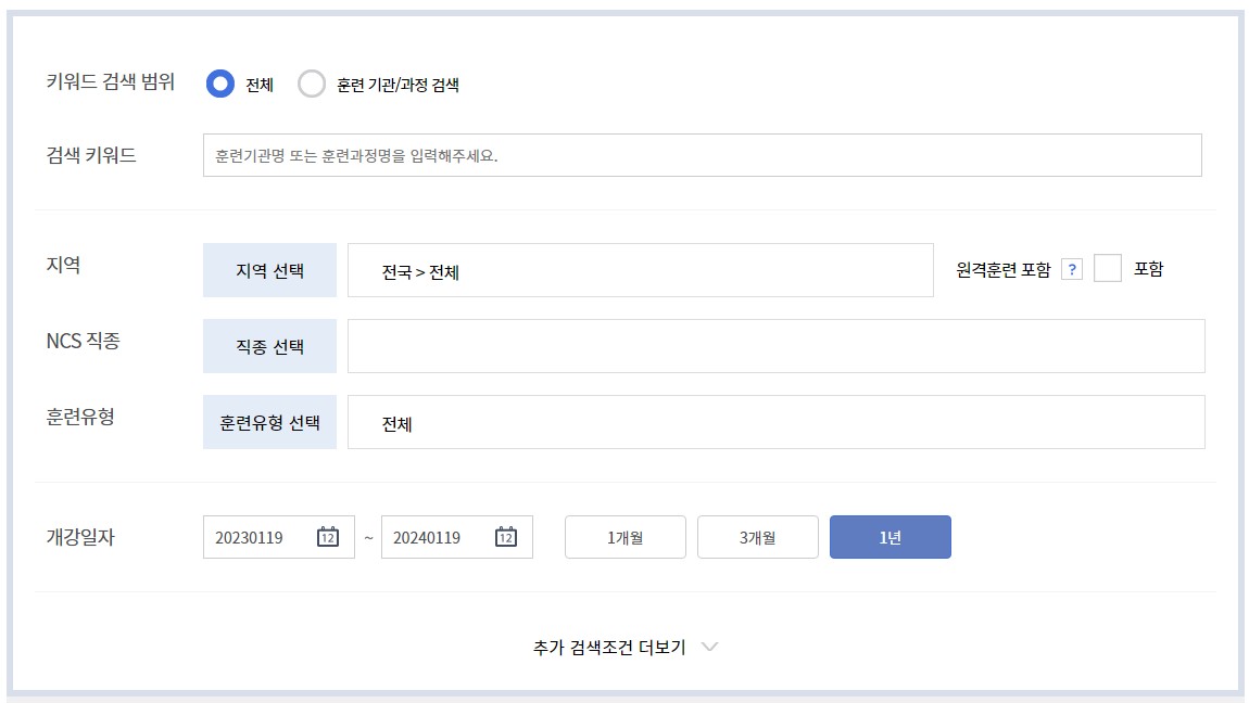 3) 검색!! - 키워드, 지역, 훈련유형 등